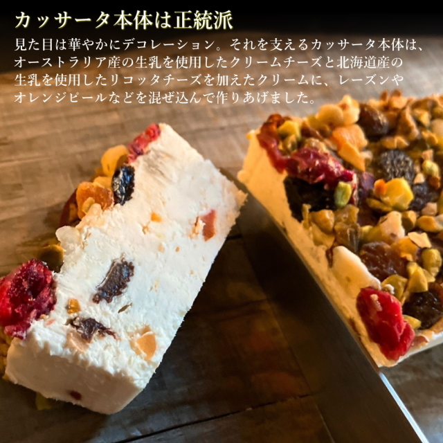 それを支えるカッサータ本体は、オーストラリア産の生乳を使用したクリームチーズと北海道産の