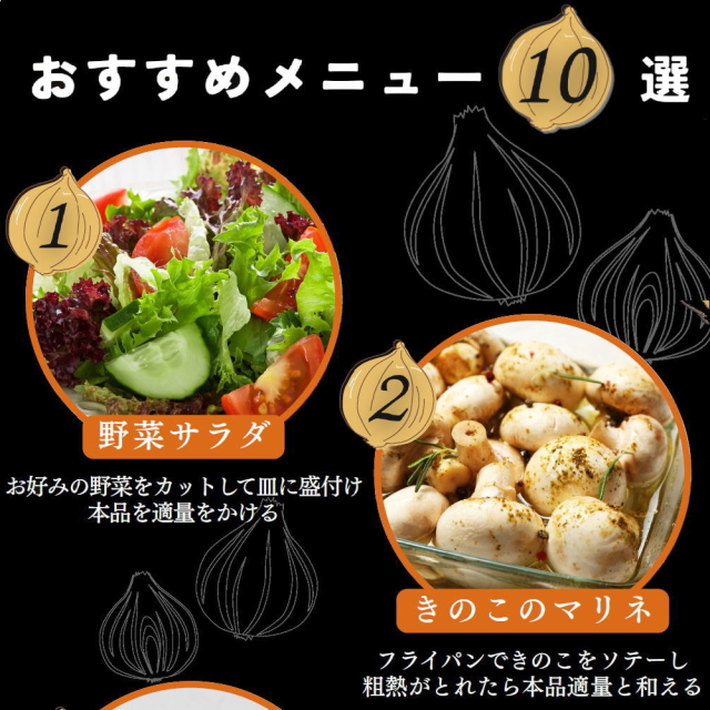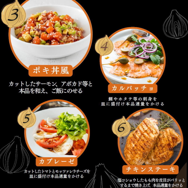 サラダはもちろん、ステーキ、ハンバーグ、魚のグリル等にも合います。