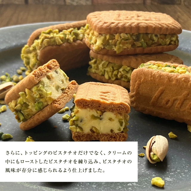 ベルギー生まれのビスケット Lotus(ロータス)でサンドしました。 カラメルとシナモンの、甘すぎず、ほのかに香る風味が楽しめる これだけでも美味しいビスケットです。