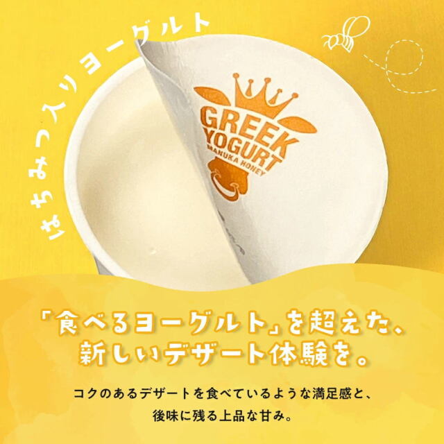 一般的なヨーグルトと比べ、とても濃厚クリーミー。 まるでクリームチーズのような食感。 なめらかな舌ざわりの奥から、マヌカハニーの香りがふわっと広がります。 コクのあるデザートを食べているような満足感と後味に残る上品な甘み。 新しいデザート体験を是非。