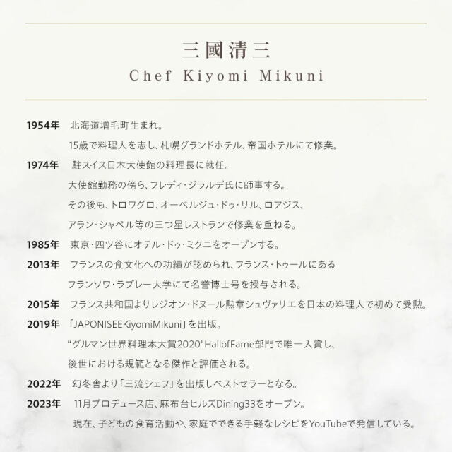 日本を代表するフランス料理の一流シェフ「三國清三」監修